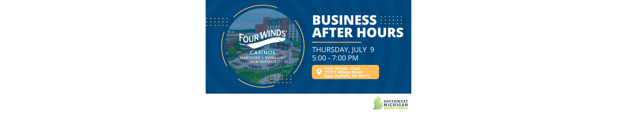 Save the date and join us July 9th out by the Four Winds Casino Pool in New Buffalo (11111 Wilson Rd, New Buffalo, MI 49117) for Business After Hours.