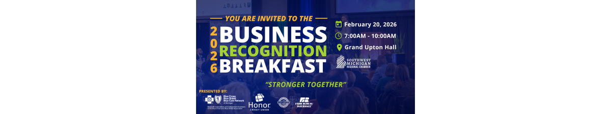 The 2026 Business Recognition Award Ceremony & Annual Meeting presented by Blue Cross Blue Shield of Michigan, Honor Credit Union and The Batalis Agency - Farm Bureau Insurance returns Friday, February 20th! Doors open at 7:00am and the program begins at 7:30am at Grand Upton Hall located in the Mendel Center at Lake Michigan College.