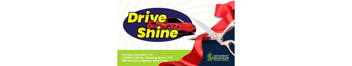Join the Southwest Michigan Regional Chamber, Drive & Shine and the community on Thursday, December 11th at 11:00 AM for the official ribbon cutting of the brand-new Drive & Shine, located at 5000 Red Arrow Hwy in Stevensville. Speaking remarks will begin at 11:10 AM.