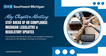 Join fellow HR professionals for our May Southwest Michigan SHRM Chapter Meeting - Stay Ahead of HR Compliance: Michigan Legislative & Regulatory Updates. This engaging session will be led by Wendy Block, Senior Vice President of Business Advocacy for the Michigan Chamber of Commerce.